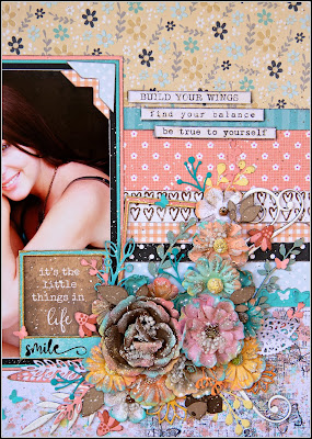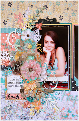 I am sharing a layout using the beautiful new One Perfect Day collection. I love the soft pastel colors, and romantic vintage style with lace and florals.