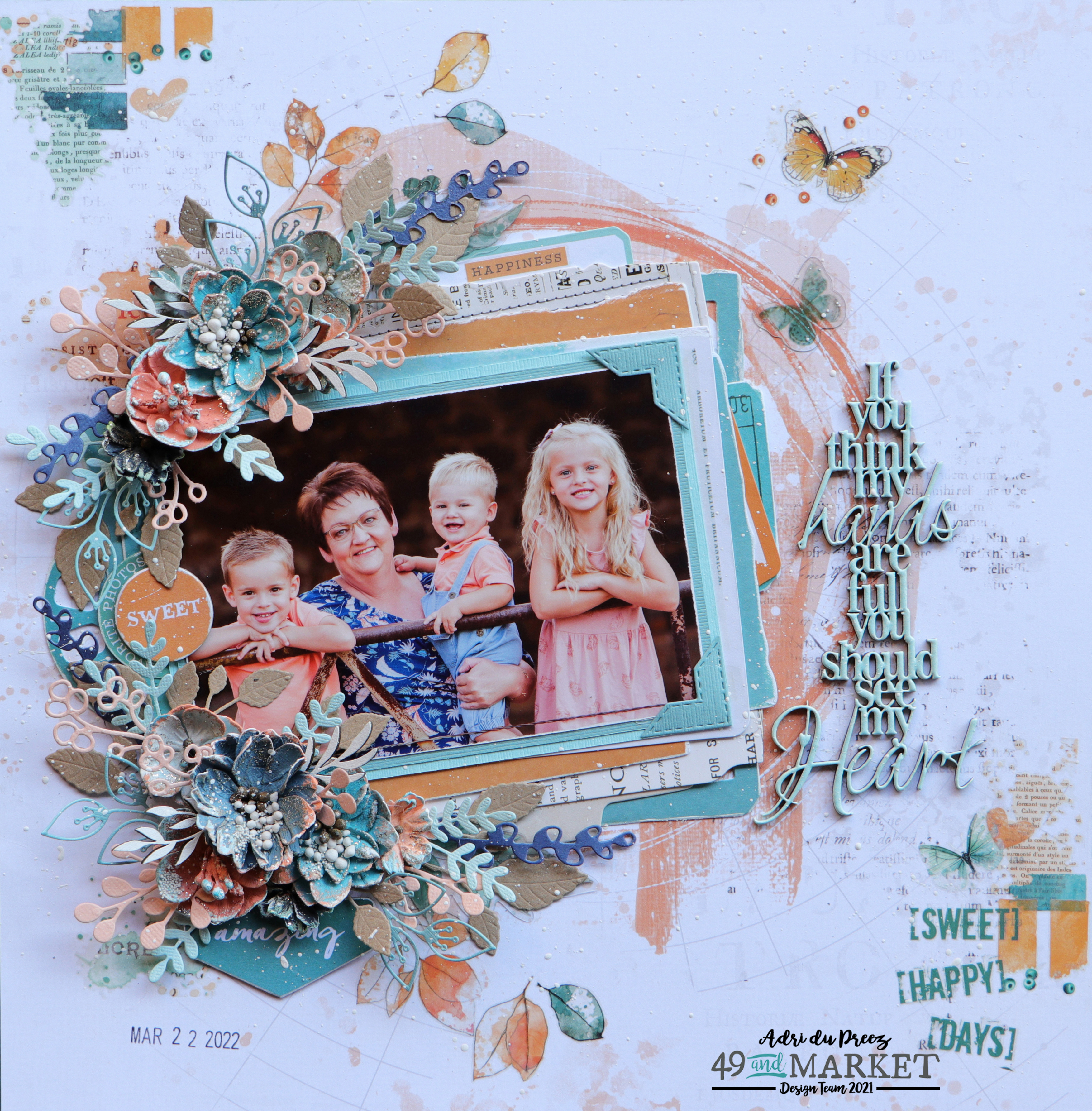 The photo is layered on pieces from Spectrum Sherbet remnants, essential laser-cut elements, Strawberry Lemonade laser-cut elements, Tidal Wave laser-cut elements and ephemera bits. I also added frames from the Tidal Wave and Strawberry Lemonade frame set. I used my sanding block to distress all the edges. It gives a beautiful white edge. I also added Spectrum Sherbet chipboard pieces.